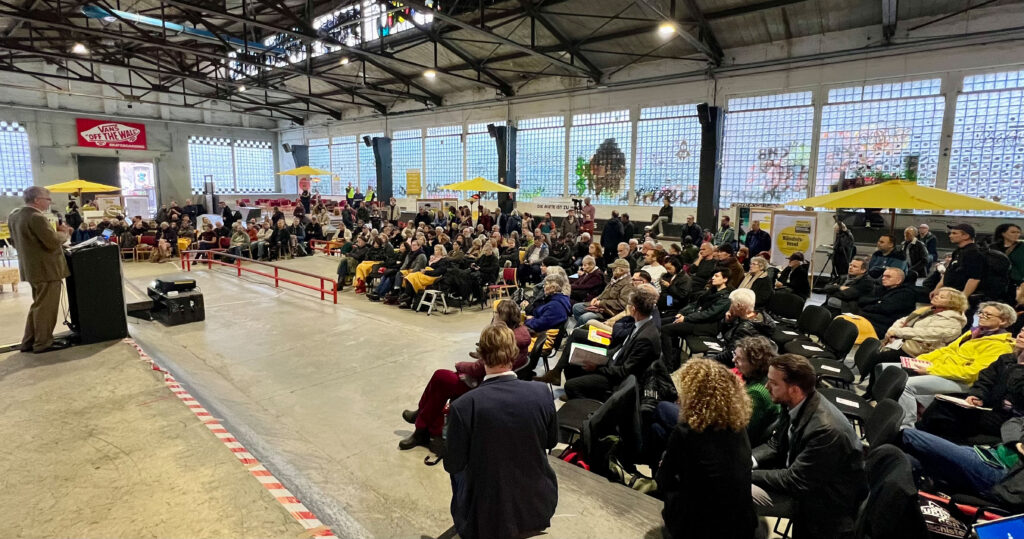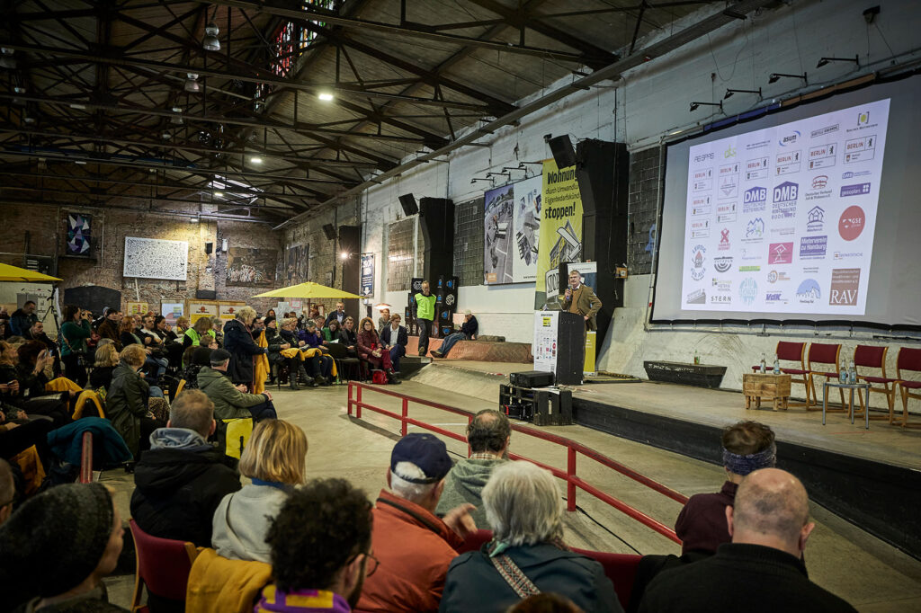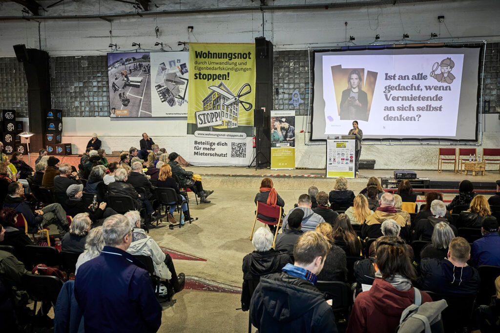 Am 14. November 2025 haben rund 500 Menschen aus ganz Deutschland in Berlin ein starkes Zeichen gesetzt: gegen Verdrängung, Umwandlung und Eigenbedarfskündigungen. In der Skate-Halle Berlin und auf dem RAW-Gelände haben wir mit der ersten großen Konferenz des Bündnisprojekts „Wohnungsnot stoppen!“ einen kollektiven Arbeitsprozess gestartet – mit inspirierenden Beiträgen, vielstimmigen Diskussionen und einem gemeinsamen Ziel: den Mieter*innenschutz stärken, um sozialen Zusammenhalt und Teilhabe am städtischen Leben zu sichern.